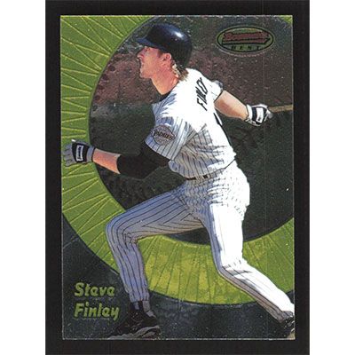 This is a 1998 Bowman's Best Steve Finley baseball card. The card is #71 and pictures show condition.