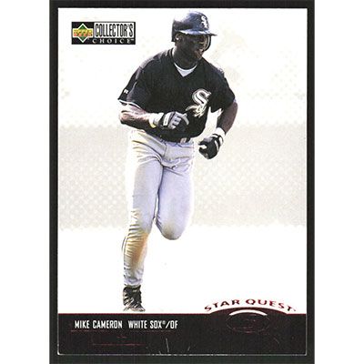 This is a 1998 Collector's Choice StarQuest Mike Cameron baseball card. The card is #SQ8 and pictures show condition.