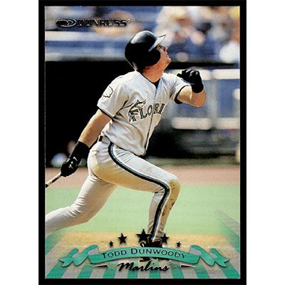 This is a 1998 Donruss Todd Dunwoody baseball card. The card is #114 and pictures show condition.