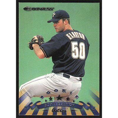 This is a 1998 Donruss Scott Elarton baseball card. The card is #330 and pictures show condition.