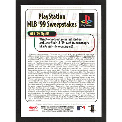This is a 1998 Donruss MLB 99 Tom Glavine baseball card. The card is #13 and pictures show condition.