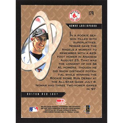 This is a 1998 Donruss Preferred Nomar Garciaparra Preferred Power Grandstand baseball card. The card is #179 and pictures show condition. Team(s): Boston Red Sox