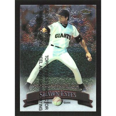 This is a 1998 Finest Shawn Estes baseball card. The card is #123 and pictures show condition.