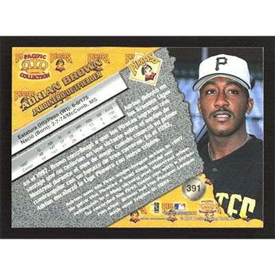 This is a 1998 Pacific Adrian Brown baseball card. The card is #391 and pictures show condition.
