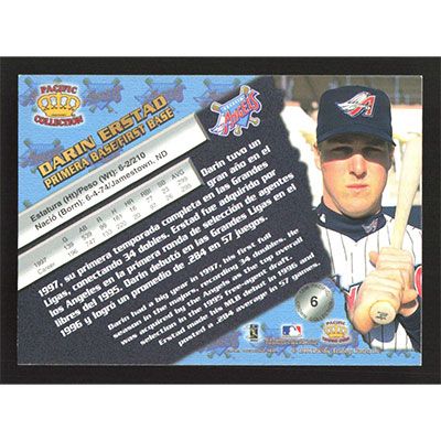 This is a 1998 Pacific Darin Erstad baseball card. The card is #6 and pictures show condition.