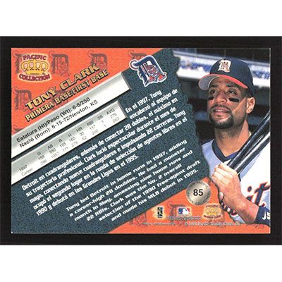 This is a 1998 Pacific Tony Clark baseball card. The card is #85 and pictures show condition.