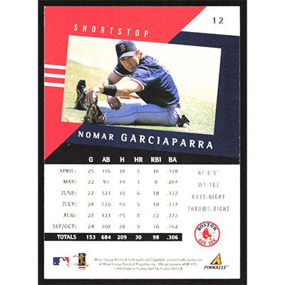 This is a 1998 Pinnacle Performers Nomar Garciaparra baseball card. The card is #12 and pictures show condition.