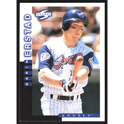 This is a 1998 Score Darin Erstad baseball card. The card is #93 and pictures show condition.