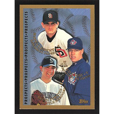 This is a 1998 Topps Brian Fuentes, Matt Clement and Roy Halladay Prospects baseball card. The card is #264 and pictures show condition. Team(s): Seattle Mariners/San Diego Padres/Toronto Blue Jays Rookie Card (RC)