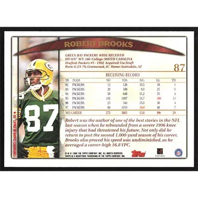 This is a 1998 Topps Robert Brooks football card. The card is #87 and pictures show condition.