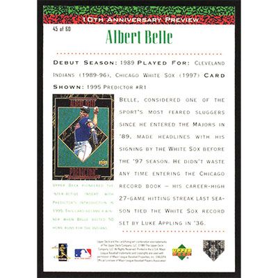 This is a 1998 Upper Deck 10th Anniversary Preview Albert Belle baseball card. The card is #45 and pictures show condition.