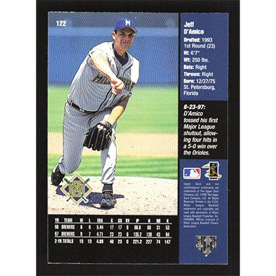 This is a 1998 Upper Deck Jeff D'Amico baseball card. The card is #122 and pictures show condition.