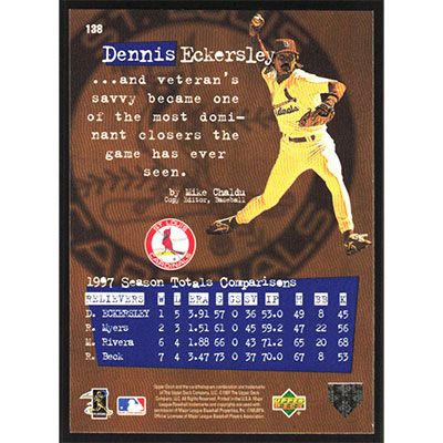 This is a 1998 Upper Deck Dennis Eckersley Define the Game baseball card. The card is #138 and pictures show condition.