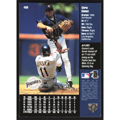 This is a 1998 Upper Deck Chris Gomez baseball card. The card is #496 and pictures show condition.