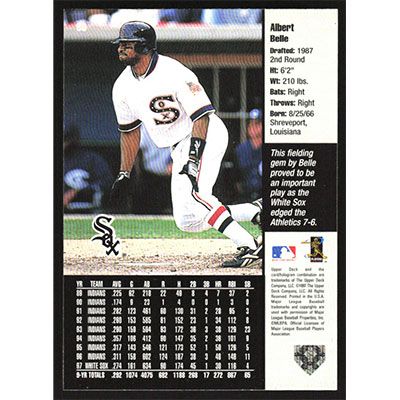 This is a 1998 Upper Deck Albert Belle baseball card. The card is #60 and pictures show condition.