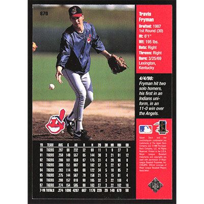 This is a 1998 Upper Deck Travis Fryman baseball card. The card is #670 and pictures show condition.