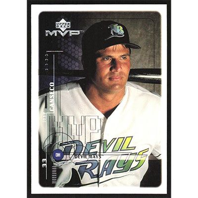 This is a 1998 Upper Deck MVP Jose Canseco baseball card. The card is #197 and pictures show condition.