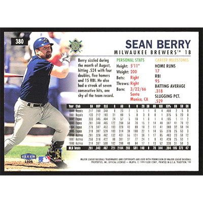 This is a 1999 Fleer Tradition Sean Berry baseball card. The card is #380 and pictures show condition.