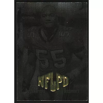 This is a 1999 Metal Universe Derrick Brooks NFLPD football card. The card is #191 and pictures show condition.