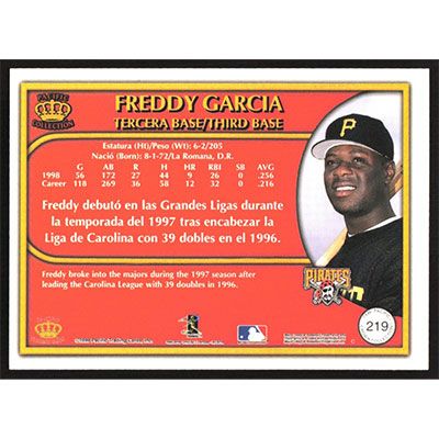 This is a 1999 Pacific Crown Collection Freddy Garcia baseball card. The card is #219 and pictures show condition.