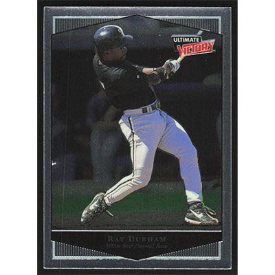 This is a 1999 Ultimate Victory Ray Durham baseball card. The card is #28 and pictures show condition.