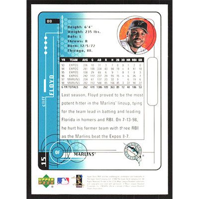 This is a 1999 Upper Deck MVP Cliff Floyd baseball card. The card is #88 and pictures show condition.