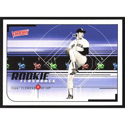 This is a 1999 Upper Deck Victory Roger Clemens Rookie Flashback baseball card. The card is #453 and pictures show condition.