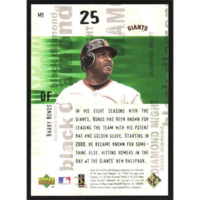 This is a 2000 Black Diamond Rookie Edition Diamond Might Barry Bonds baseball card. The card is #M9 and pictures show condition. Team(s): San Francisco Giants