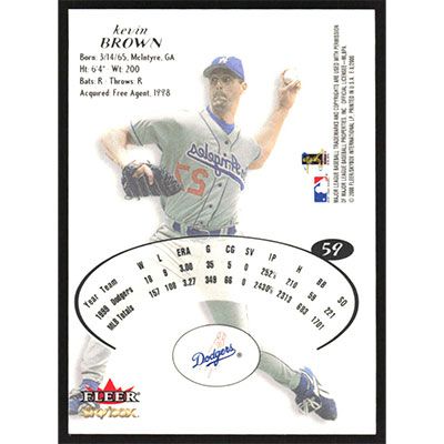 This is a 2000 E-X Kevin Brown baseball card. The card is #59 and pictures show condition.