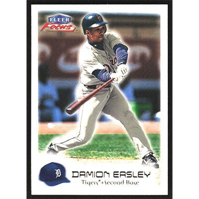 This is a 2000 Fleer Focus Damion Easley baseball card. The card is #187 and pictures show condition.
