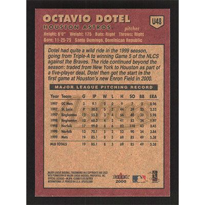 This is a 2000 Fleer Tradition Update Octavio Dotel baseball card. The card is #U48 and pictures show condition.