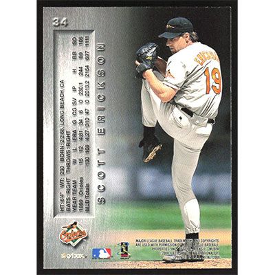 This is a 2000 Metal Scott Erickson baseball card. The card is #34 and pictures show condition.