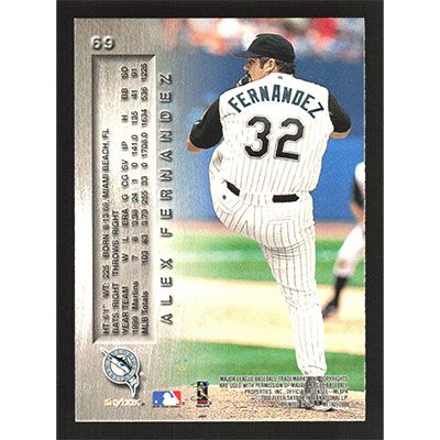 This is a 2000 Metal Alex Fernandez baseball card. The card is #69 and pictures show condition.