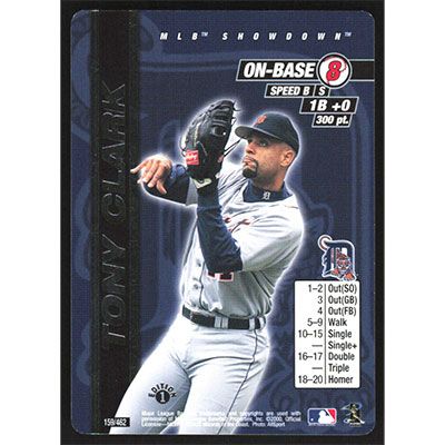This is a 2000 MLB Showdown 1st Edition Tony Clark baseball card. The card is #159 and pictures show condition.