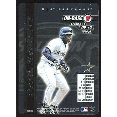 This is a 2000 MLB Showdown 1st Edition Carl Everett Foil baseball card. The card is #194 and pictures show condition.