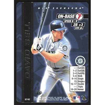 This is a 2000 MLB Showdown 1st Edition David Bell baseball card. The card is #387 and pictures show condition.