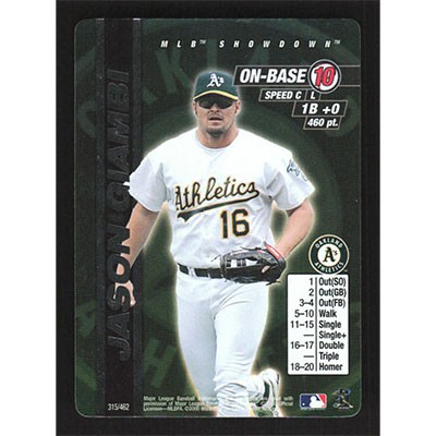 This is a 2000 MLB Showdown Unlimited Jason Giambi Foil baseball card. The card is #315 and pictures show condition.