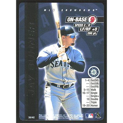 This is a 2000 MLB Showdown Unlimited Jay Buhner baseball card. The card is #388 and pictures show condition.