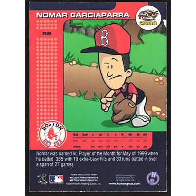This is a 2000 Pacific Backyard Baseball Nomar Garciaparra baseball card. The card is #NNO and pictures show condition.