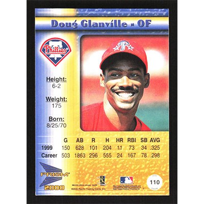 This is a 2000 Pacific Prisms Rapture Silver Doug Glanville baseball card. The card is #110 and pictures show condition. Team(s): Philadelphia Phillies