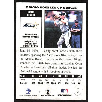 This is a 2000 Private Stock Craig Biggio baseball card. The card is #61 and pictures show condition.