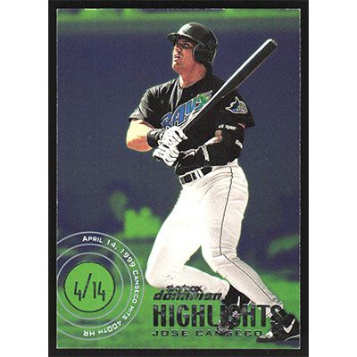 This is a 2000 SkyBox Dominion Jose Canseco Highlights baseball card. The card is #11 and pictures show condition.