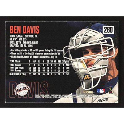 This is a 2000 SkyBox Dominion Ben Davis baseball card. The card is #260 and pictures show condition.