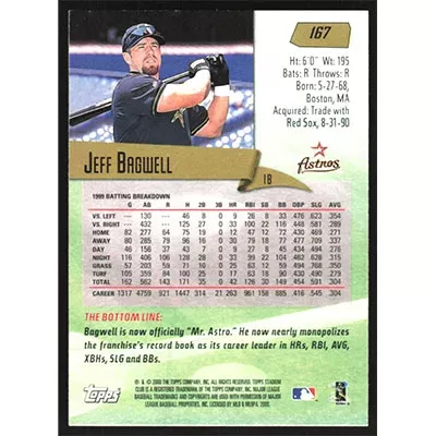 This is a 2000 Stadium Club Jeff Bagwell baseball card. The card is #167 and pictures show condition.