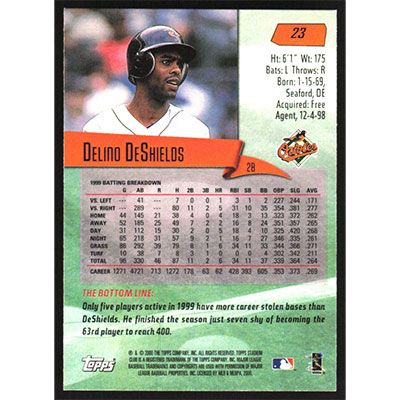This is a 2000 Stadium Club Delino DeShields baseball card. The card is #23 and pictures show condition.