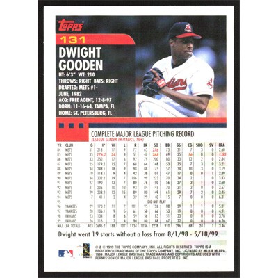 This is a 2000 Topps Dwight Gooden baseball card. The card is #131 and pictures show condition.