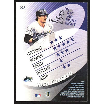 This is a 2000 Topps Stars Jose Canseco baseball card. The card is #87 and pictures show condition.