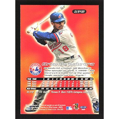 This is a 2000 Ultra Orlando Cabrera baseball card. The card is #176 and pictures show condition.