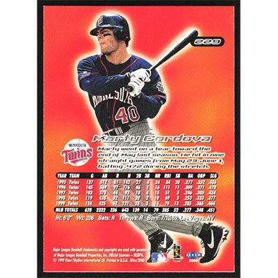 This is a 2000 Ultra Marty Cordova baseball card. The card is #229 and pictures show condition.