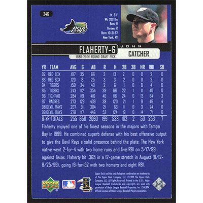 This is a 2000 Upper Deck John Flaherty baseball card. The card is #246 and pictures show condition.